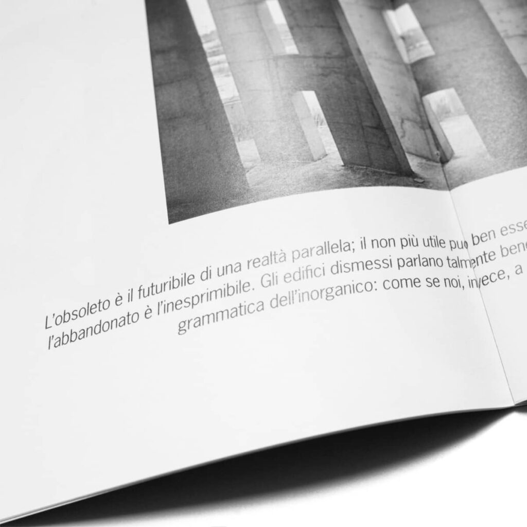 L’obsoleto è il futuribile di una realtà parallela; il non più utile può ben essere il non ancora concepibile, il derelitto è l’inarrivabile, l’abbandonato è l’inesprimibile. Gli edifici dismessi parlano talmente bene la lingua del postum(an)o da relegarci ai margini della grammatica dell’inorganico: come se noi, invece, a parlare dovessimo ancora imparare.